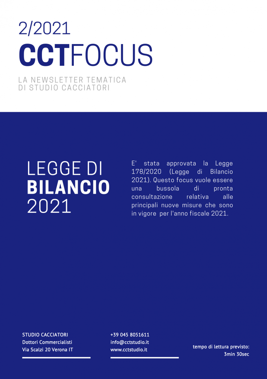 È stata approvata la legge 178/2020 (Legge di Bilancio 2021). Questo focus vuole essere una bussola di pronta consultazione relativa alle principali nuove misure che sono in vigore per l'anno ...